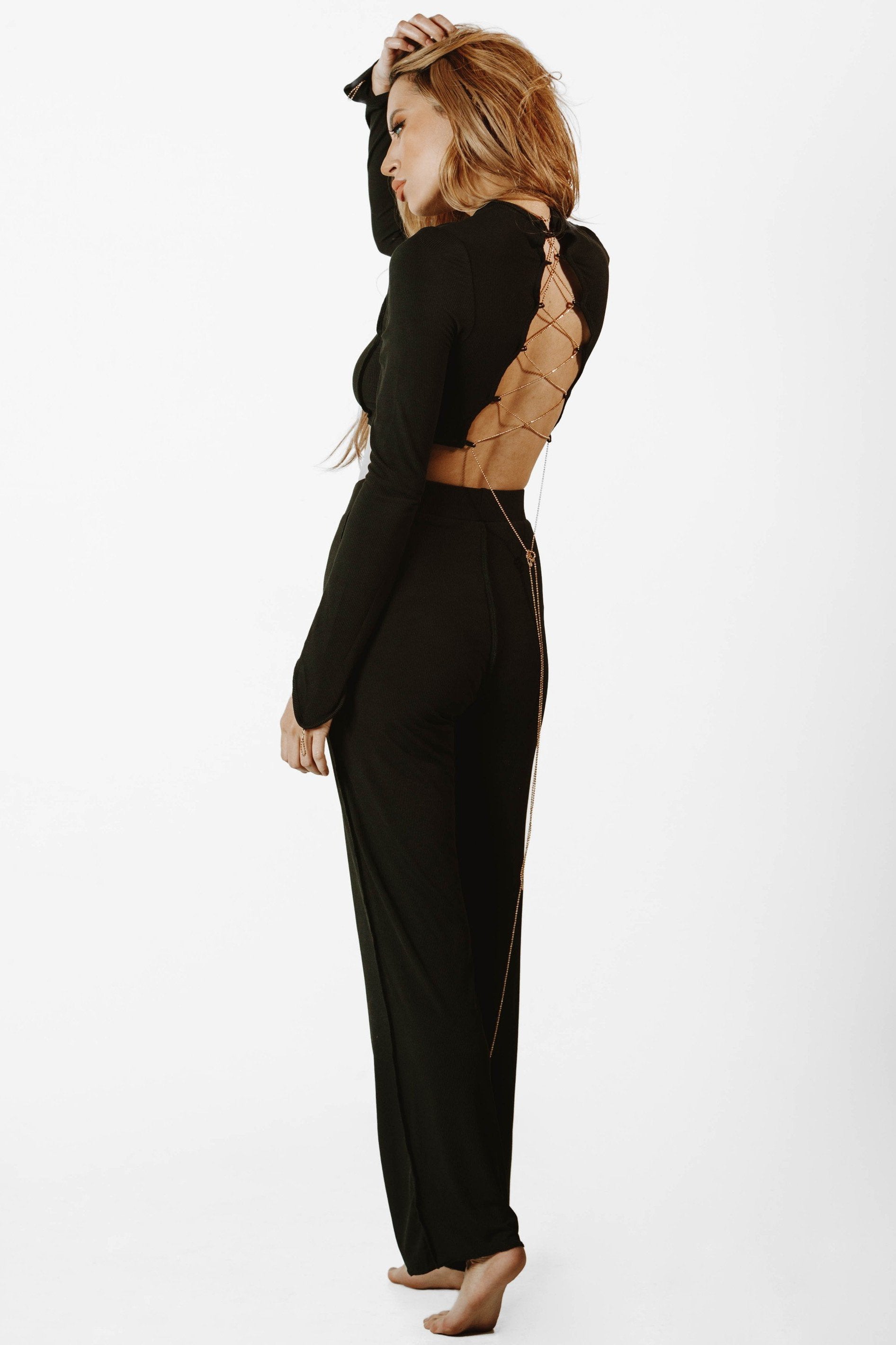 Black Backless Chain Pant Set