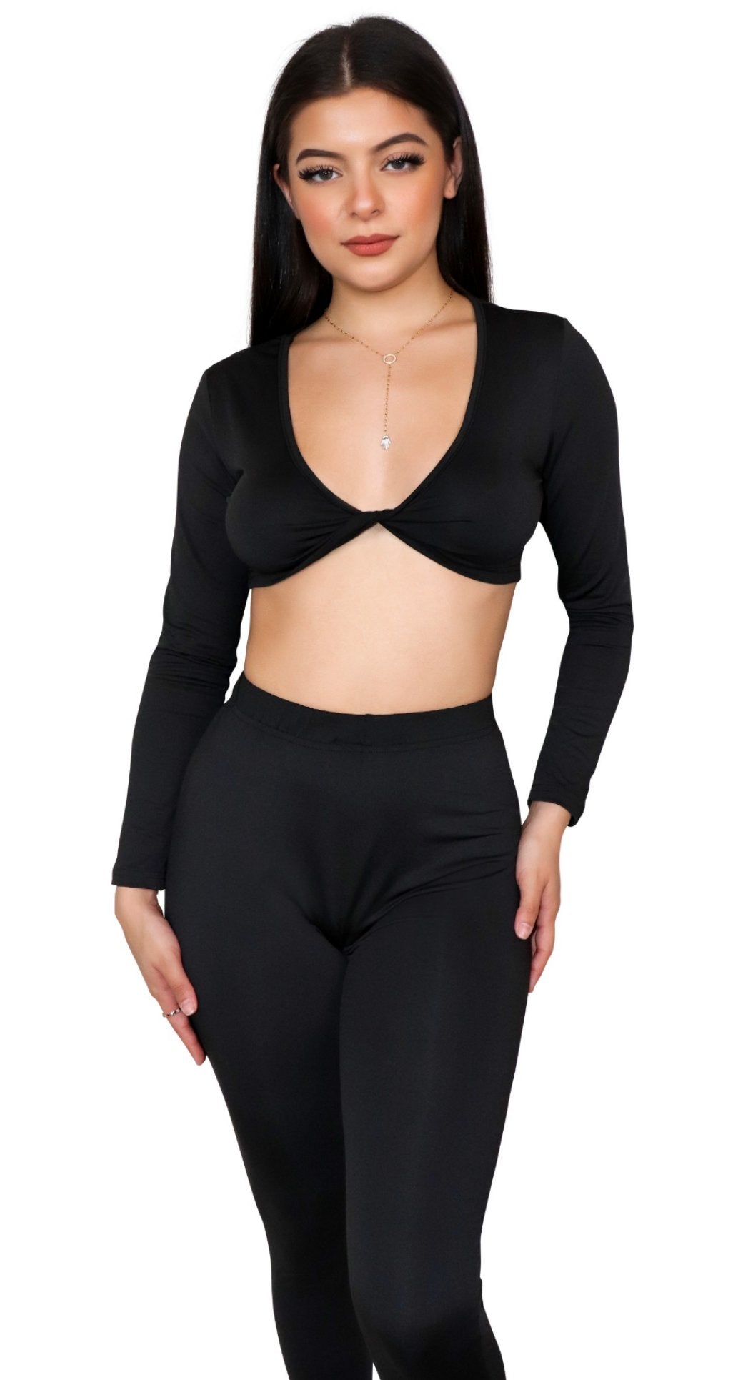 Two piece pant set with twisted crop top , cute day/night out fit